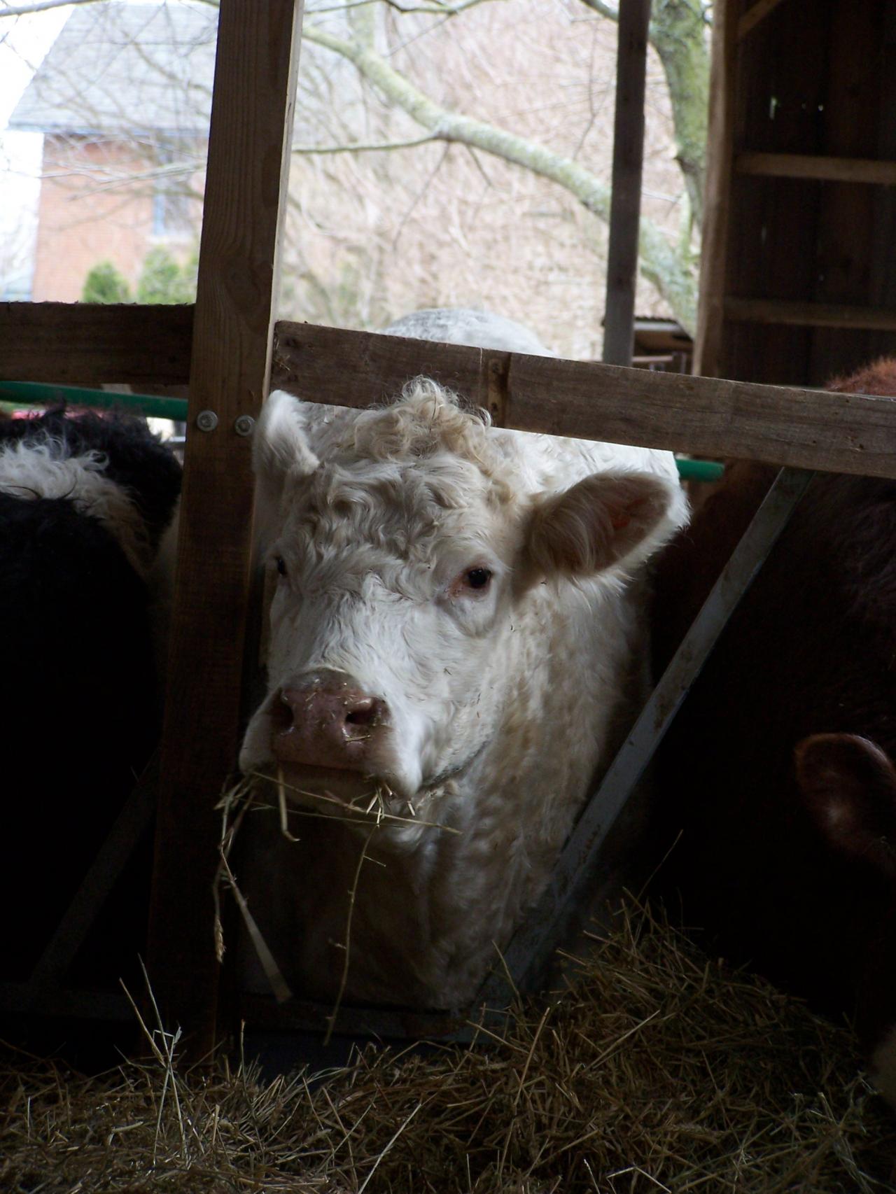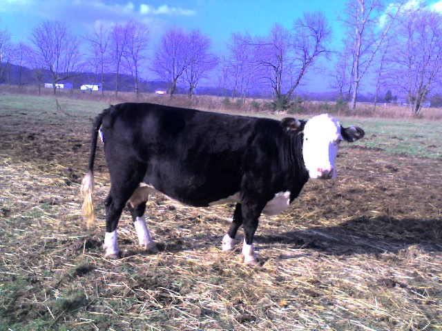 Some cattle get to stay and be in the herd for a long time, others go quickly. In the case of the long-timers, we have found that it's actually better for all concerned if they get to take one last trailer-ride to OVM, where they meet their end quickly and purposefully. This was illustrated in harsh relief in the summer of 2013, when dear old Loiny went to OVM for freezer beef (a sad day indeed). About a month later, Riblet was mortally injured in a breeding accident. After trying to nurse her back to health for 4 days, it became apparent that she was not going to stand up again, and we had to have her euthanized. Then it was time to rent a big backhoe and dig a big hole in the pasture to lay her to rest. I would have rather that she'd had a quick ending and ended up in the freezer, than for her to have had such a drawn out death, and ended up in the ground.